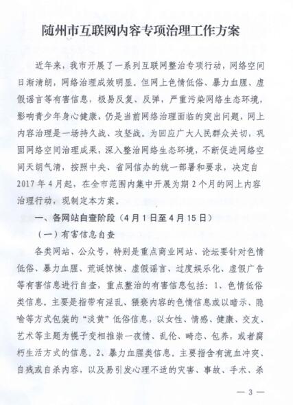 昨日下午,隨州清華網(wǎng)絡(luò)參加了由市委組織部組織的隨州市互聯(lián)網(wǎng)內(nèi)容專項治理工作會,會議主要對互聯(lián)網(wǎng)內(nèi)容整治工作方案進(jìn)行了交流,以下為會議文件